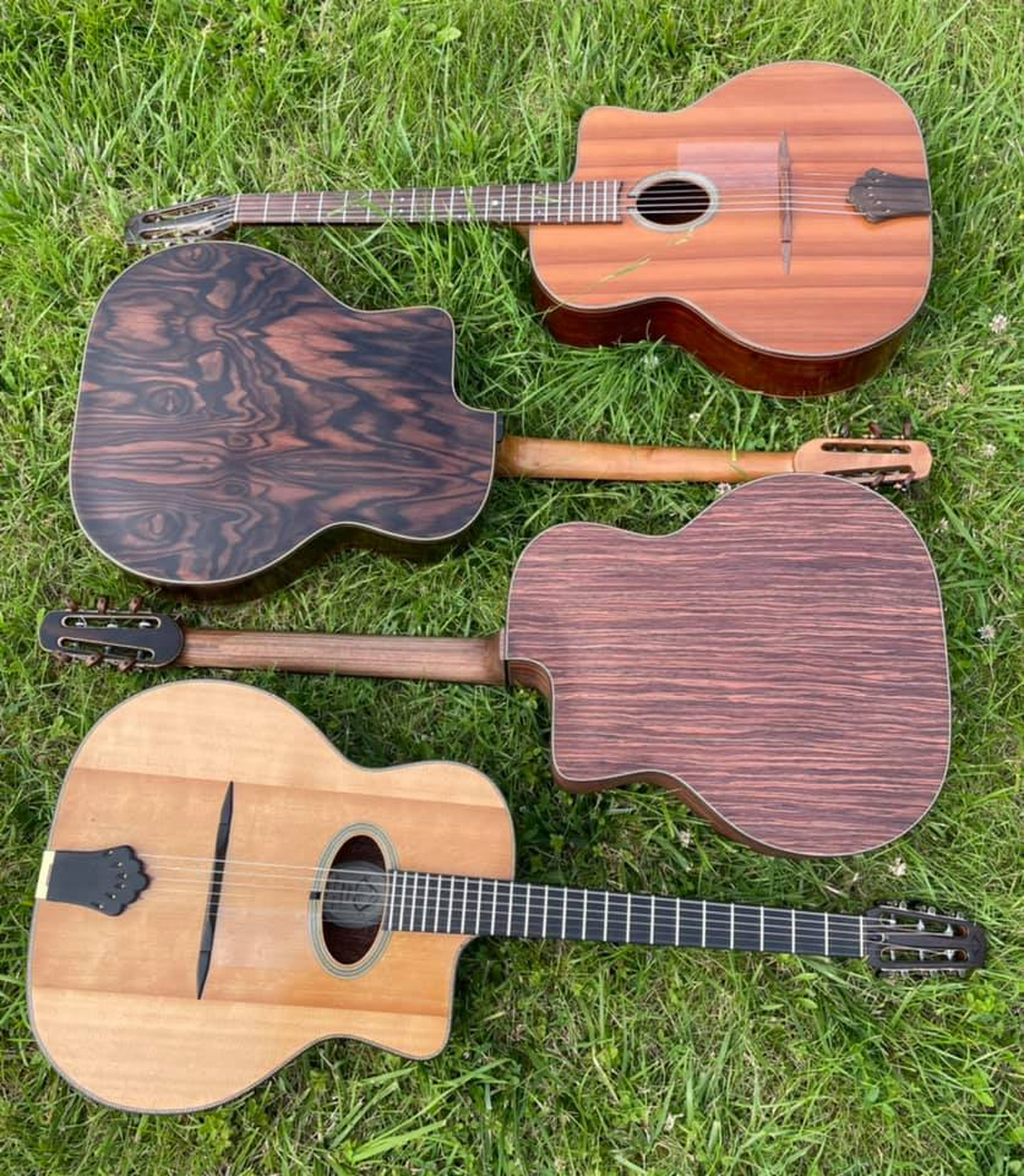 Loin des lumières artificielles des studios, cette galerie dévoile mes instruments à la lumière du jour, là où le grain du bois, les ondes de l’érable et la profondeur des vernis se révèlent sans filtre. Chaque photo capture un instrument unique, conçu pour un musicien unique.