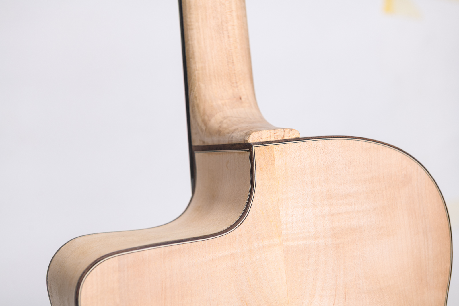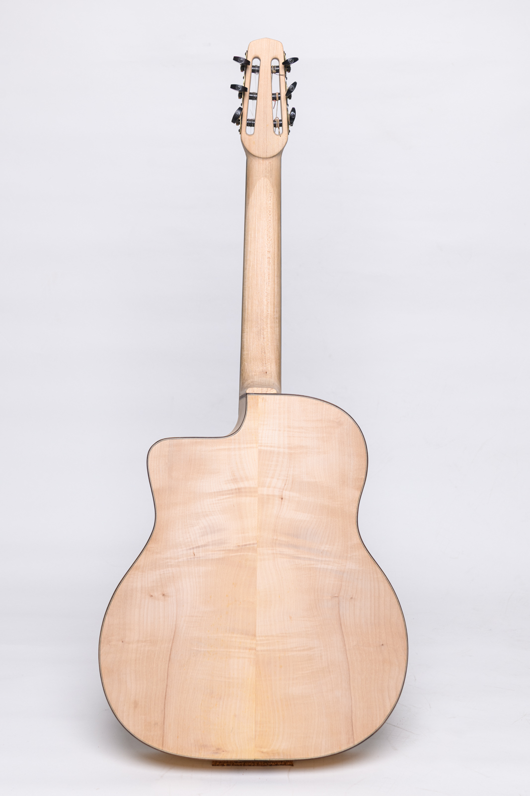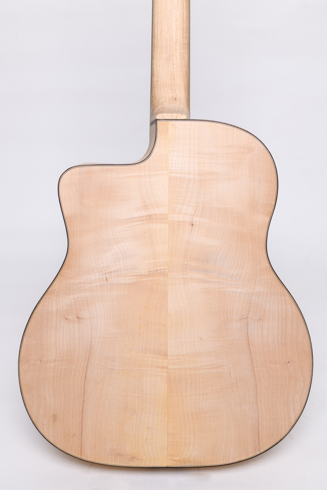 - Fond et Éclisses : En Érable ondé. Non seulement c’est magnifique à regarder (on dirait une œuvre d’art), mais cela apporte une clarté et une brillance redoutables.